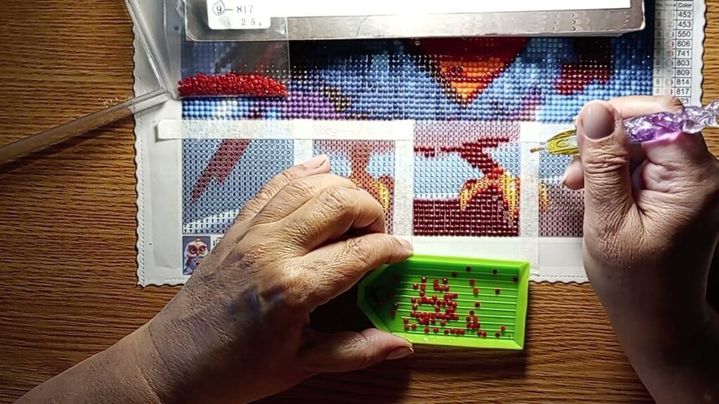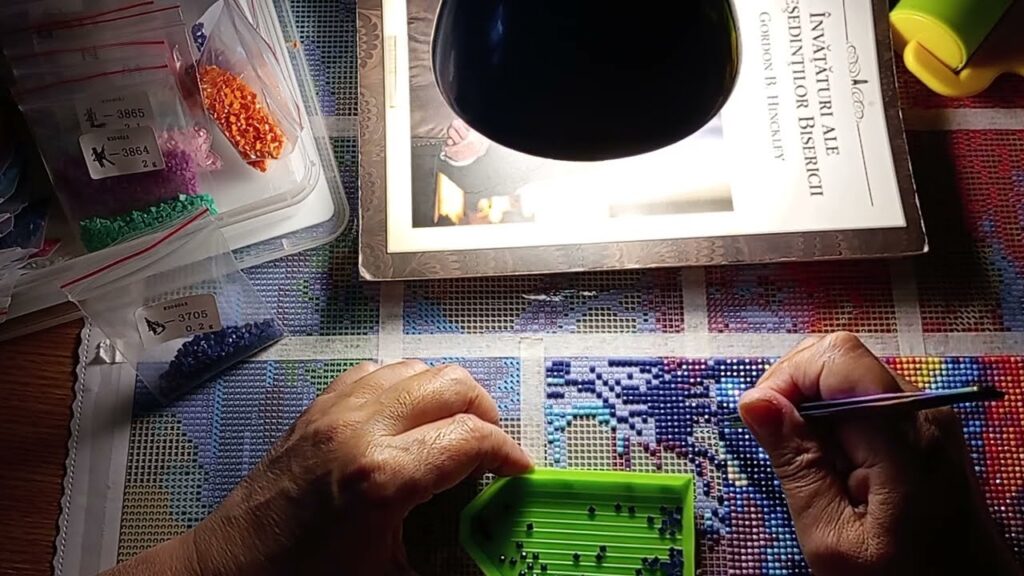 Diamond painting. We work on the Tree of Life, with tweezers. Read More »
